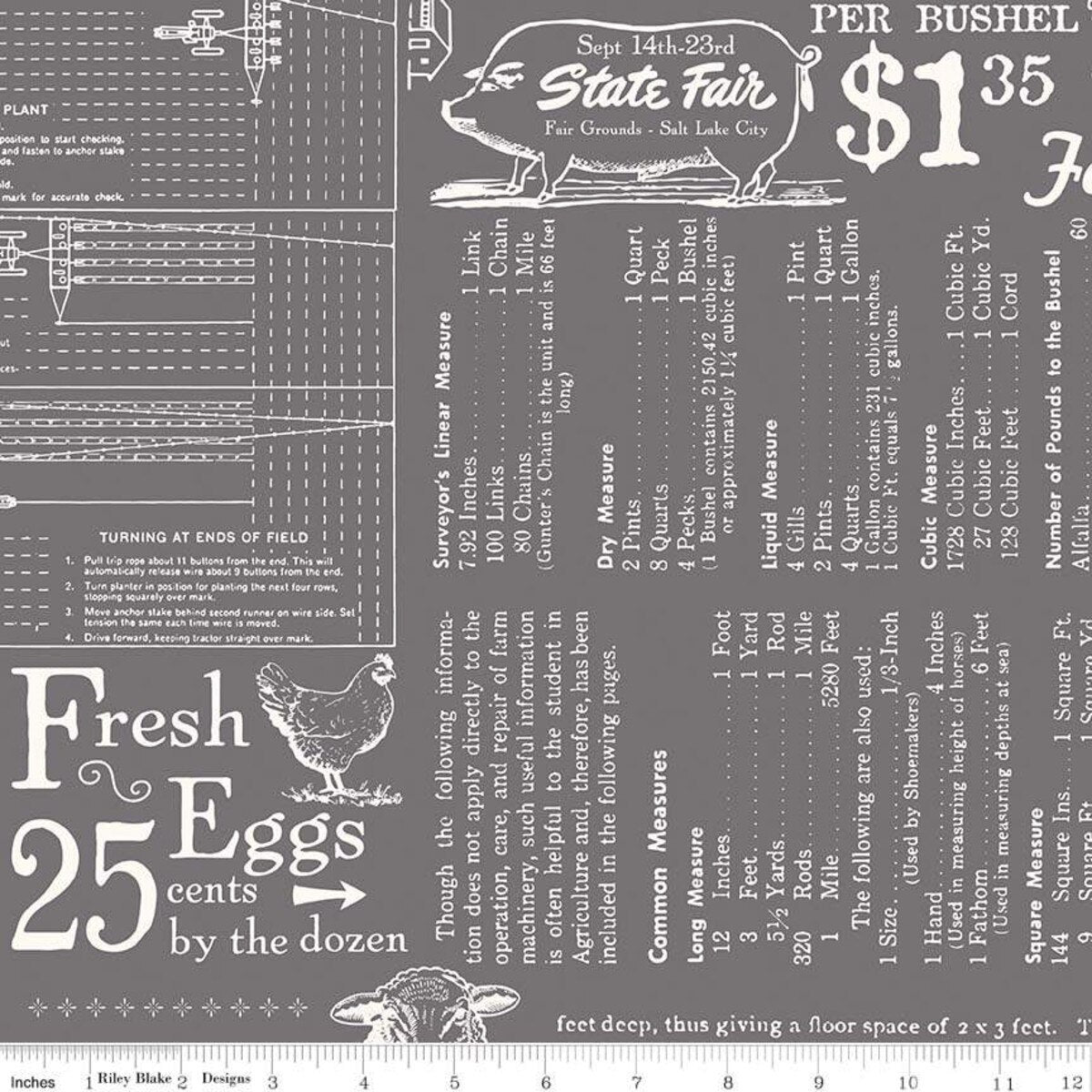 Riley Blake Farm Girl Wide Back Fabric Steel Cotton Quilt Backing